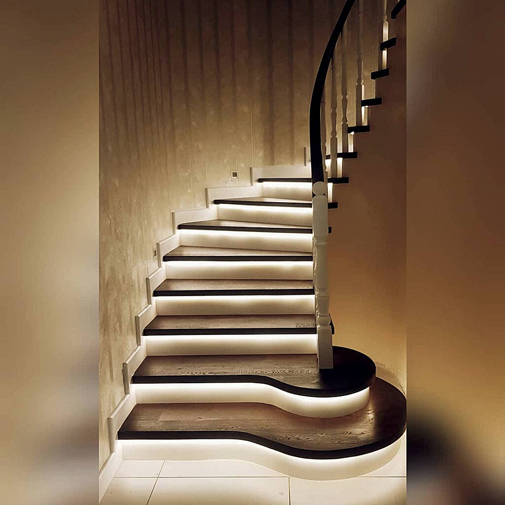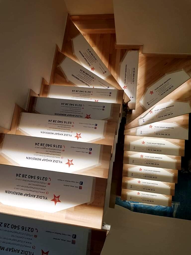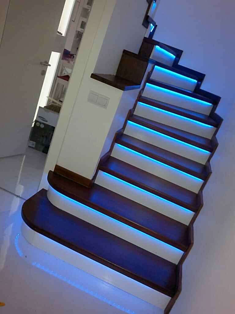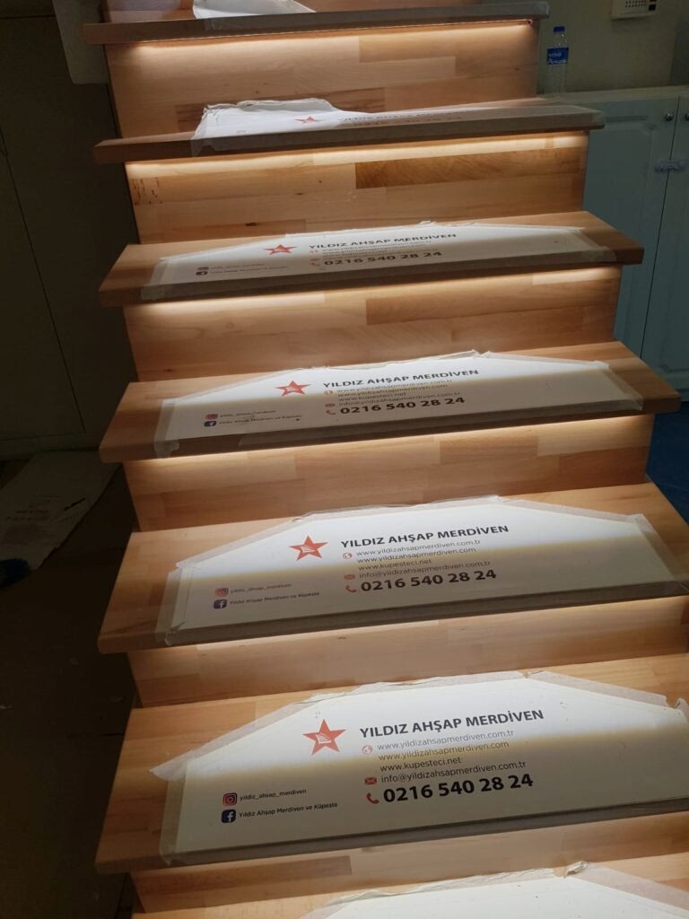Led kısmı ahşap basamakların ön kısmına gizli olarak montajını yapmaktayız.Ledler uzun ömürlüdür.İstenilen renklerde led uygulamasını yapmaktayız.